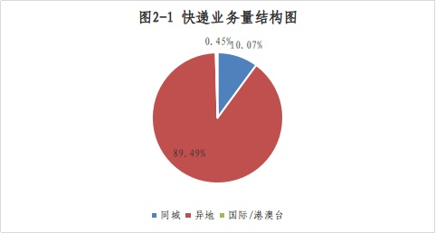 就业务量及业务收入占比来看,1-7月,湖南省同城、异地、国际/港澳台快递业务量分别占全部快递业务量的10.07%、89.49%和0.45%;业务收入分别占全部快递收入的7.07%、57.89%和2.93%。